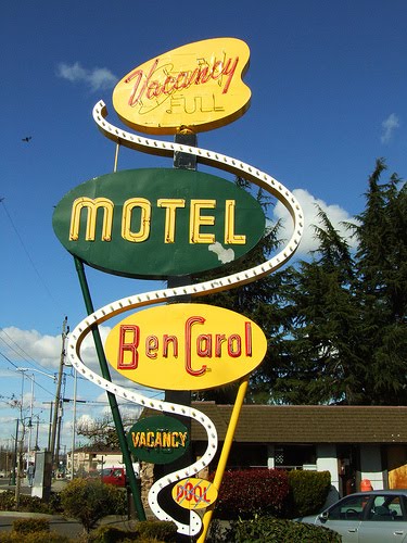 It's those huge old rusting Motel Signs that are so alien to our eyes, a real bit of America, and now sadly gradually disappearing from the landscape as the old motels close down. I think they're such an iconic part of the American landscape - I'm glad that some are now being preserved. Here are some examples: